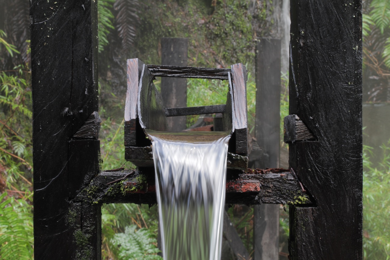 el agua— sino por una acequia de madera abierta como las de los molinos mapuches